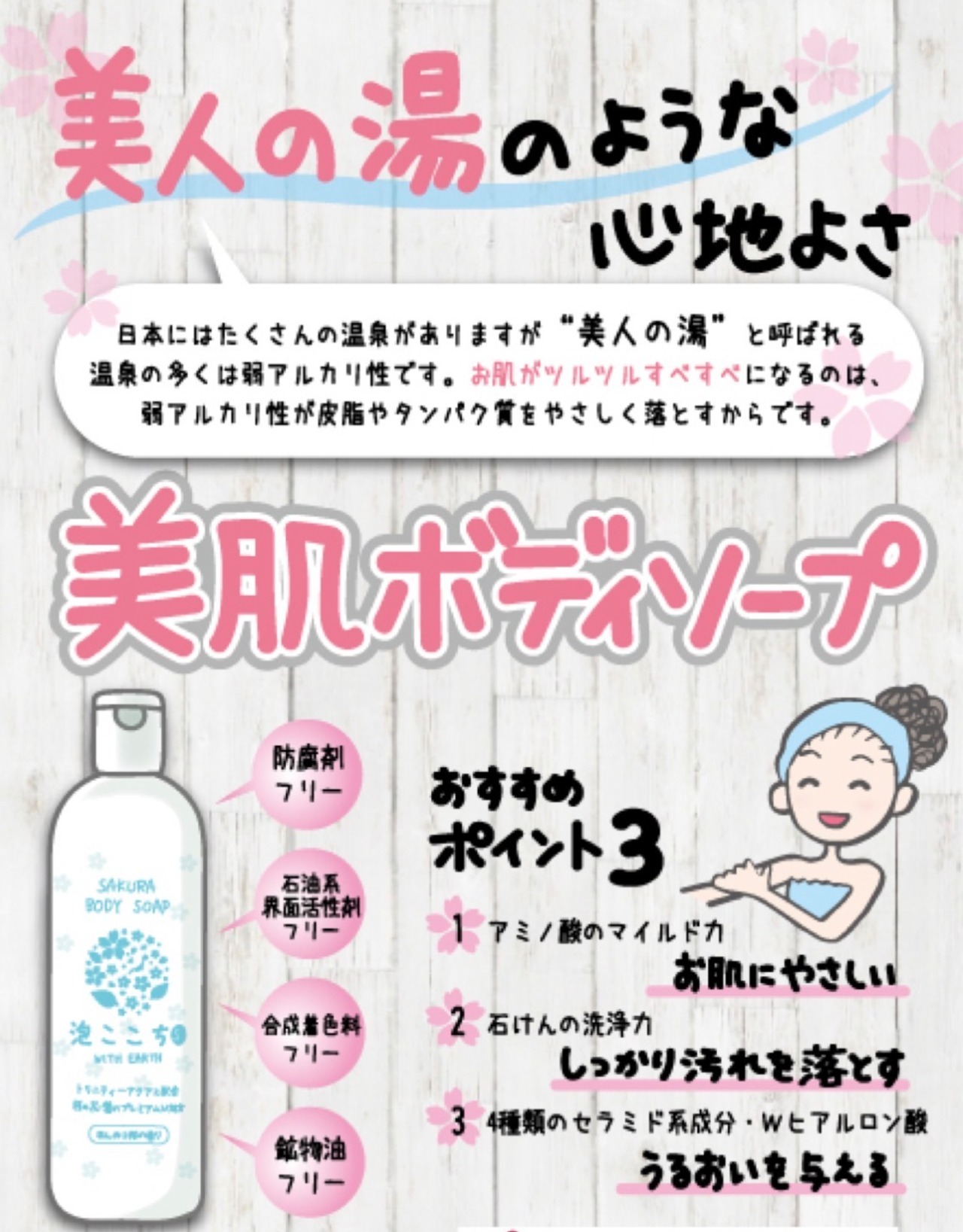 優れた整肌作用で肌荒れを防ぐソメイヨイノ葉エキス配合で敏感な肌の方にもお使いいただけます。