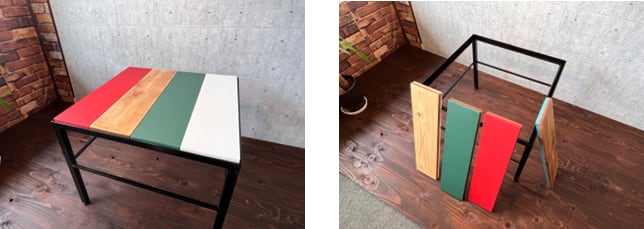 思い出のお家の階段の廃材を、イスとサイドテーブルにリメイク